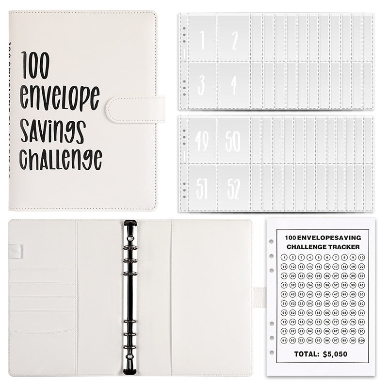 Setzen Sie sich ein Ziel und verwirklichen Sie Ihre Träume Stück für Stück. Dieses 100-Tage-Sparbuch mit losen Blättern nimmt Sie mit auf eine einfache und unterhaltsame Herausforderung zum Geldsparen! Das tragbare, wasserdichte und leicht zu öffnende Design ermöglicht Ihnen, jederzeit und überall Wechselgeld aufzunehmen und einzuzahlen und bringt Sie so Ihrem Wunsch jeden Tag einen Schritt näher.
