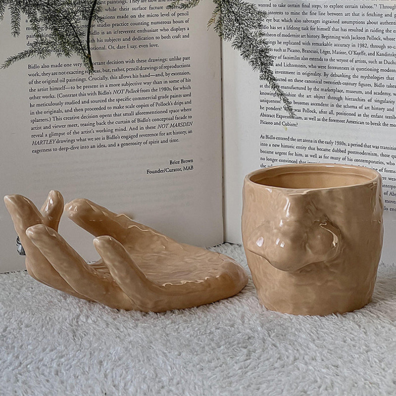 Das einzigartige Henkeldesign erinnert an einen in ein Nasenloch eingeführten Finger und erzeugt einen auffälligen, verspielten visuellen Effekt, der Sie zum Lachen bringt! -