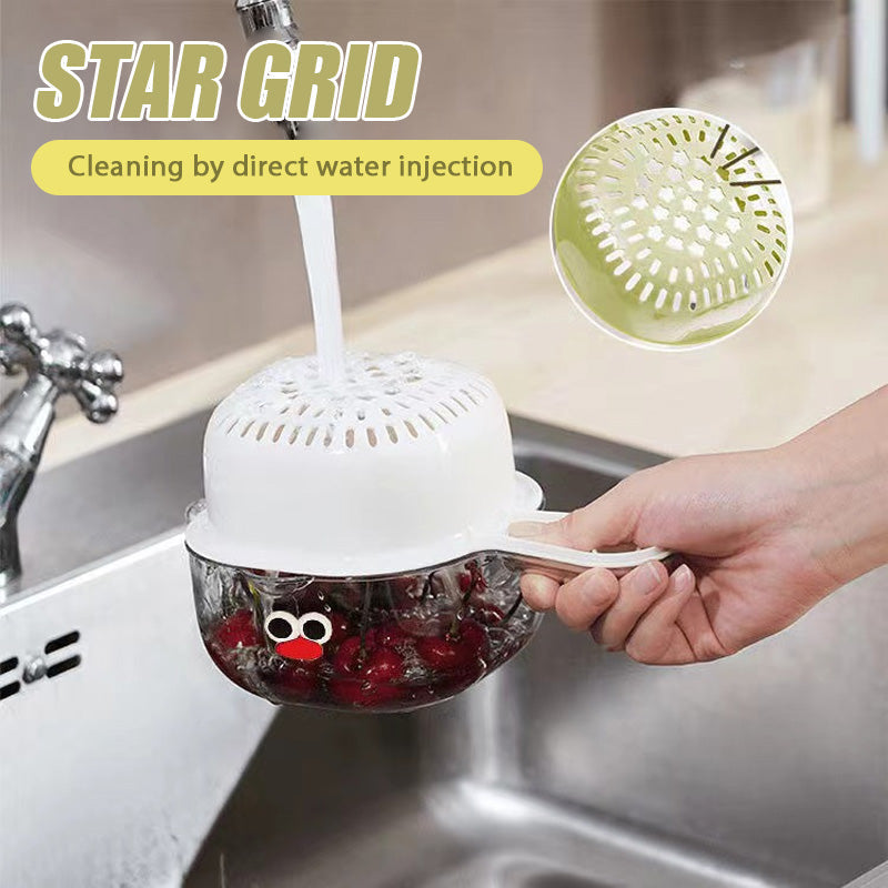 Der Korb mit dem verspielten Sternchenmuster ermöglicht ein einfaches Spülen und Schütteln Ihrer Produkte. Der integrierte Griff macht das Waschen von Obst und Gemüse zu einem Kinderspiel und spart Ihnen Zeit und Mühe.