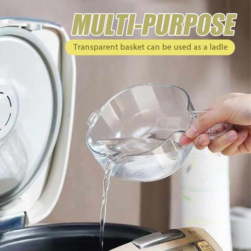 Neben dem Waschen kann dieser transparente Korb auch als Wasserschöpfer zum Kochen oder Spülen von Reis verwendet werden. Seine robuste Bauweise macht ihn zu einem zuverlässigen Werkzeug für verschiedene Aufgaben in der Küche.