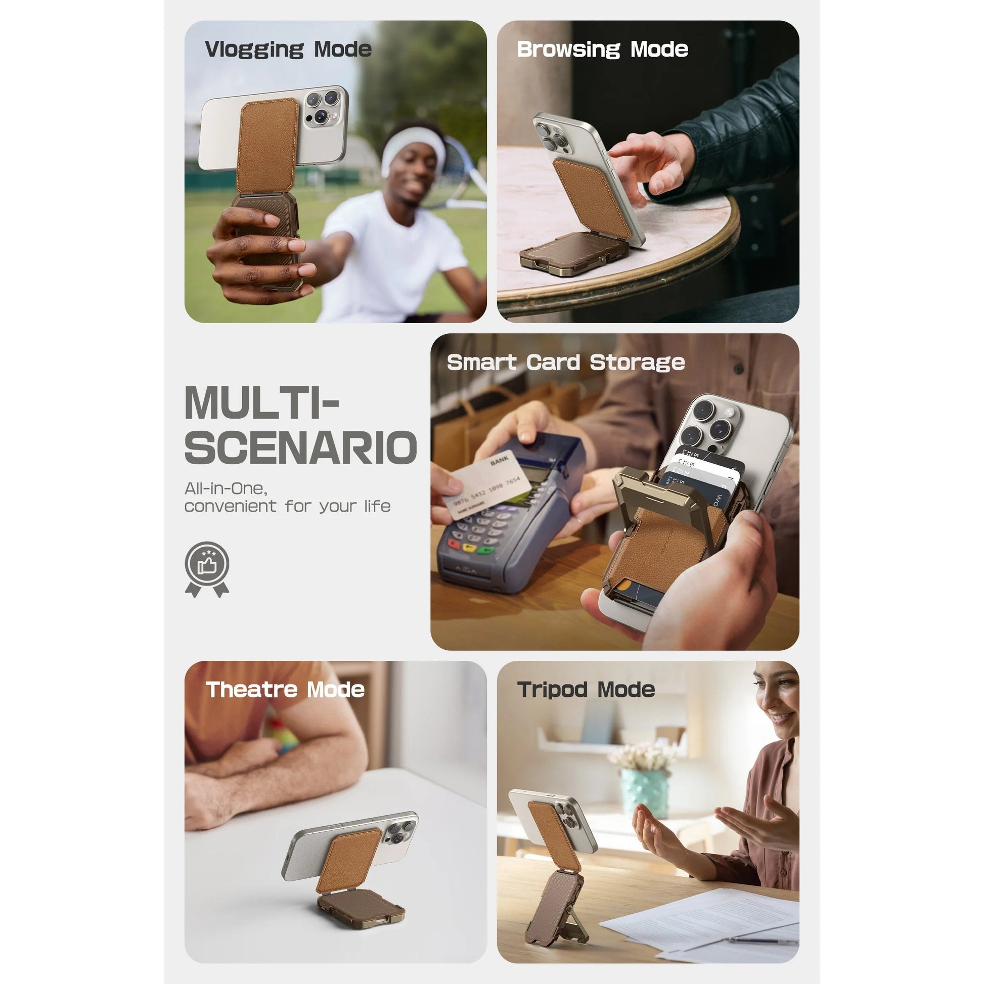 Lernen Sie Ihren MagSafe-Multitasker kennen: einen Telefonständer, der gleichzeitig als schicke Brieftasche dient! Behalten Sie Ihre wichtigsten Dinge griffbereit und genießen Sie gleichzeitig das freihändige Fernsehen.