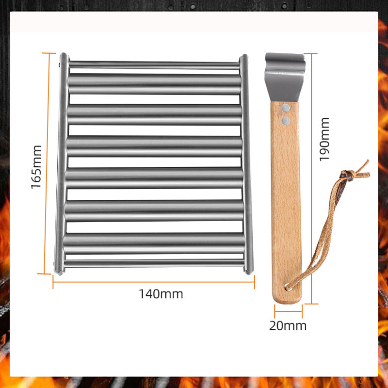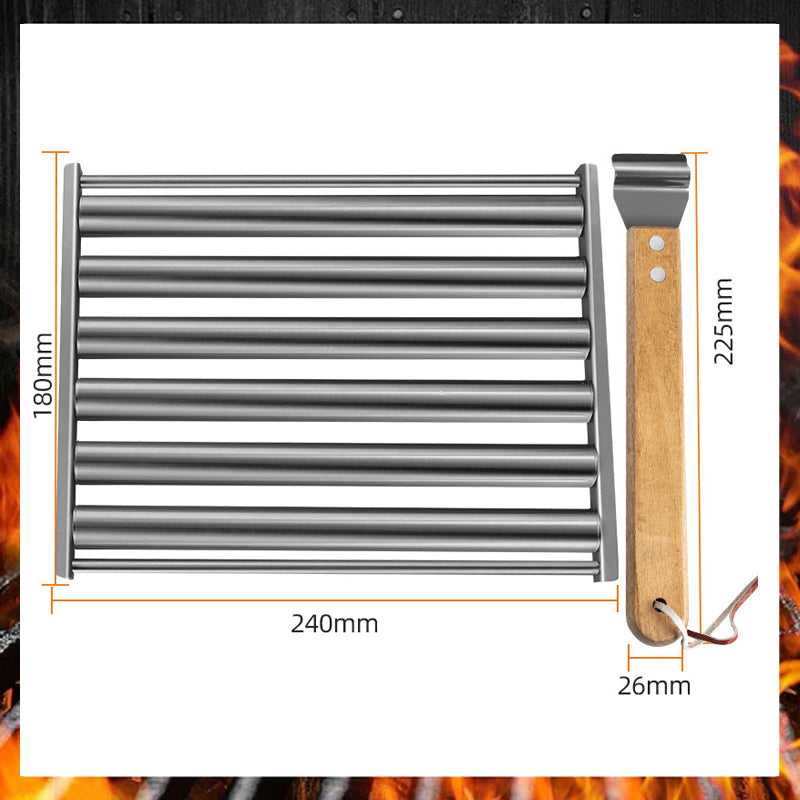 - 👍 Diese einfache Hot-Dog-Rollpfanne misst 174 mm x 158 mm und ist aus Edelstahl gefertigt. Ihr 300 mm langer Hartholzgriff ist leicht abnehmbar, um Verbrennungen beim Rollen zu vermeiden.
