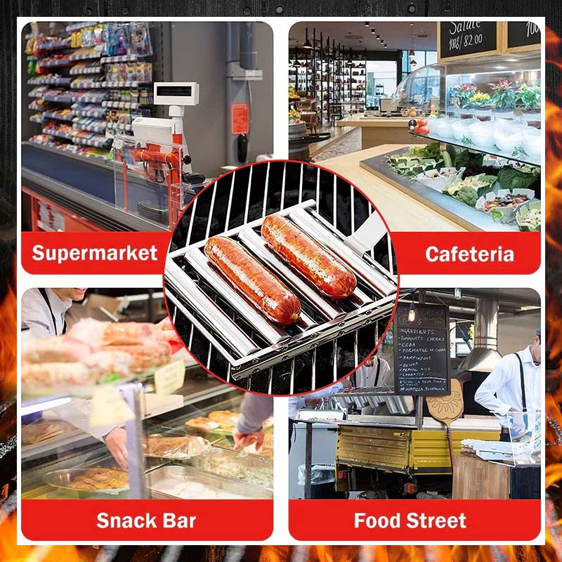 👍 Der Hot-Dog-Roller gart bis zu 5 Hot Dogs gleichzeitig gleichmäßig . So können Sie die Würstchen ganz einfach wenden und nach Ihrem Geschmack grillen. Das Ergebnis: ein köstlicher, gleichmäßig gegarter Hot Dog – ganz ohne Aufwand. Rollen Sie den Hot Dog einfach mit dem Griff nach Bedarf hin und her.