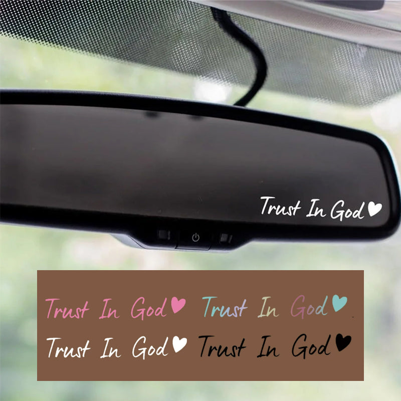 Personalisieren Sie Ihr Auto und holen Sie sich täglich Inspiration mit dem Auto-Rückspiegelaufkleber „Vertrauen in Gott“.