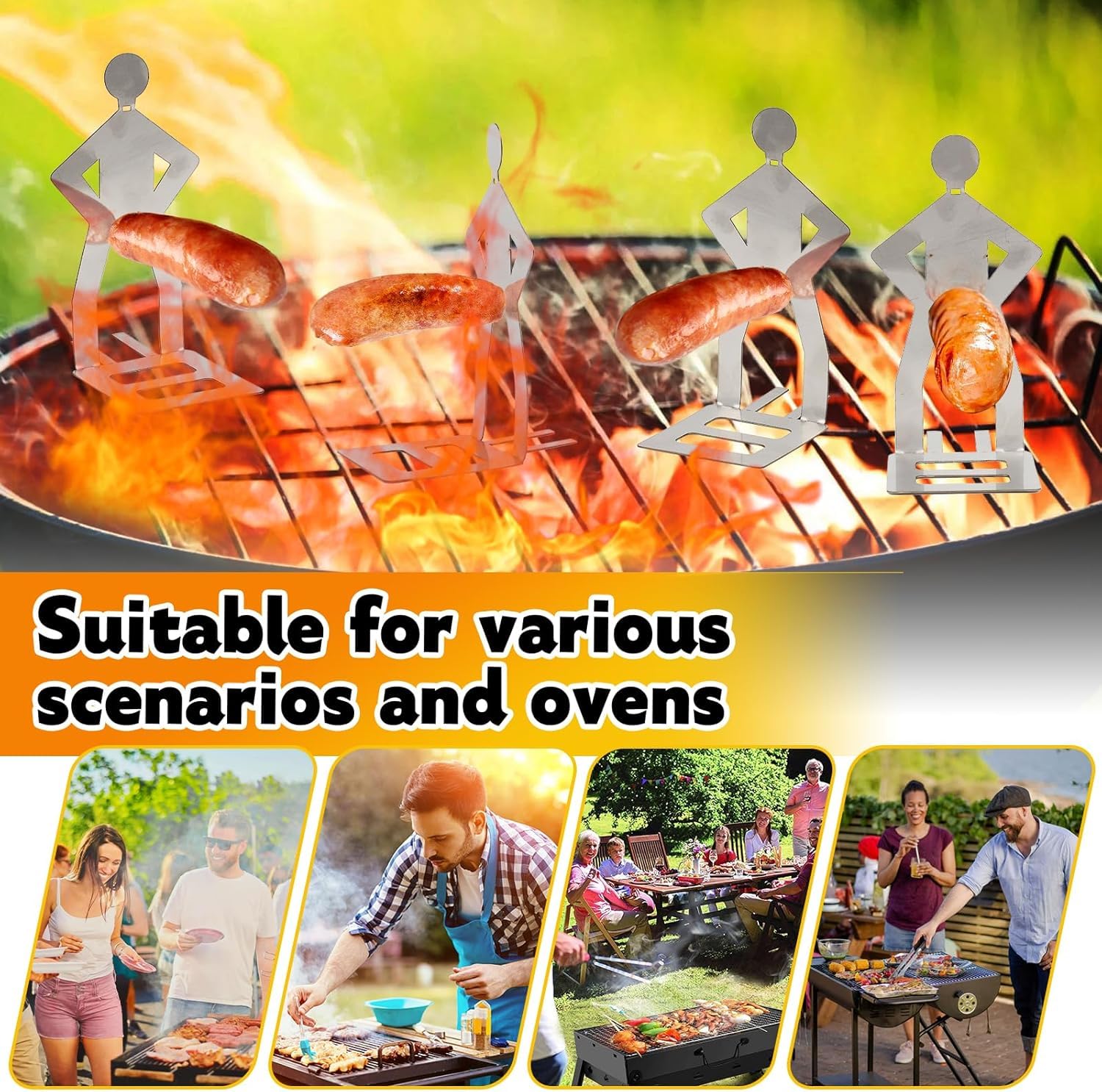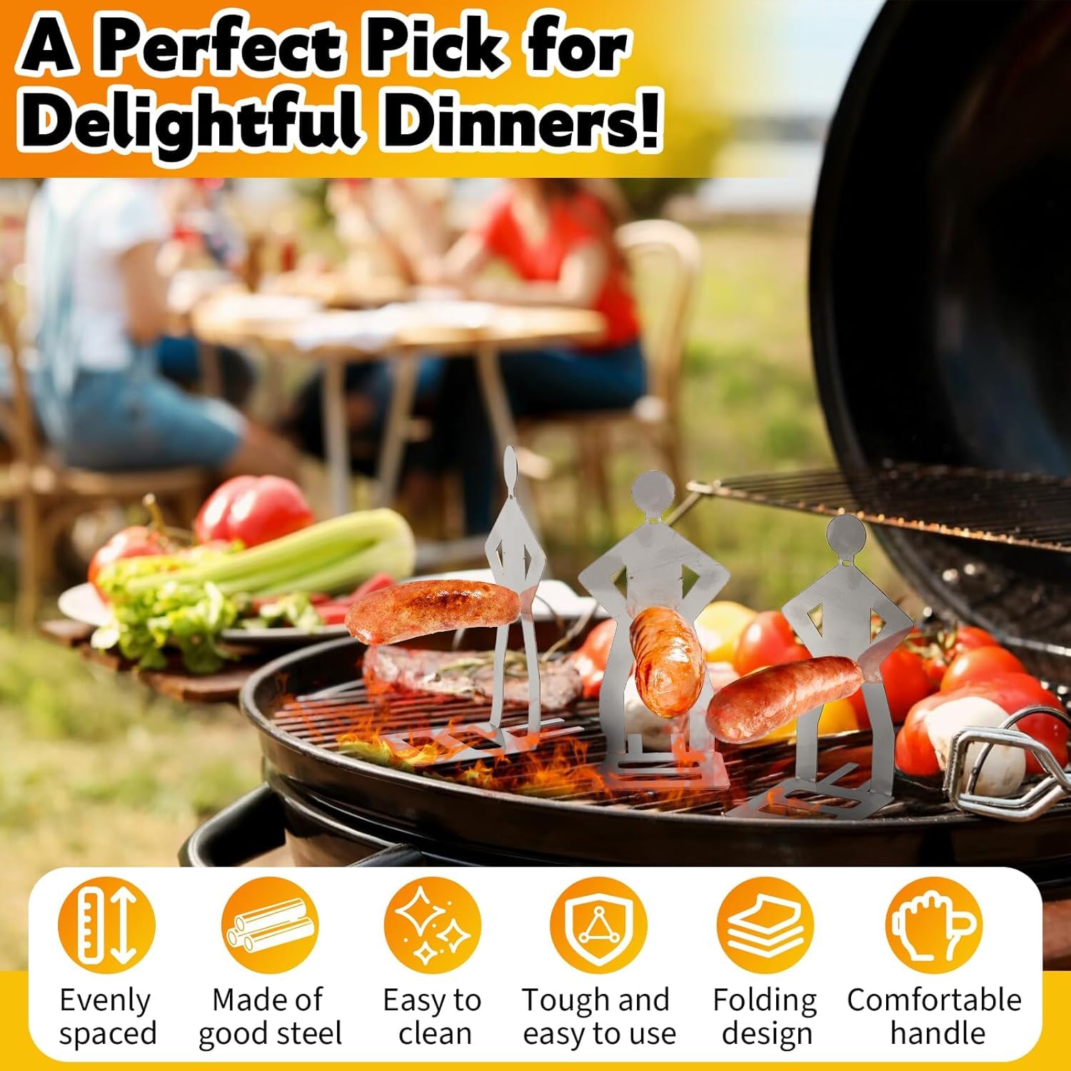 Blickfang: Das leichte Design (27 x 7 cm) ermöglicht eine einfache Aufbewahrung im Campinggepäck oder Grillkasten. Beeindrucken Sie Ihre Gäste bei Familienfeiern oder Strandpartys mit diesem originellen Grillwursthalter.